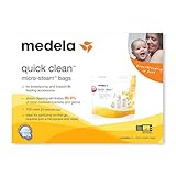 12 reusable microwave sterilizer bags (each good for 20 uses = 240 sterilization cycles total) + 100 pre-sterilized 6oz breast milk storage bags. Dishwasher safe, BPA-free, leak-proof double zipper. Medela is the hospital-standard brand - if she pumped at the hospital, it was on a Medela pump.